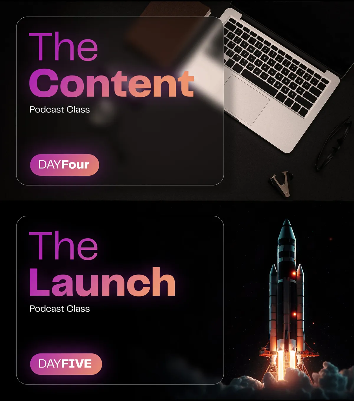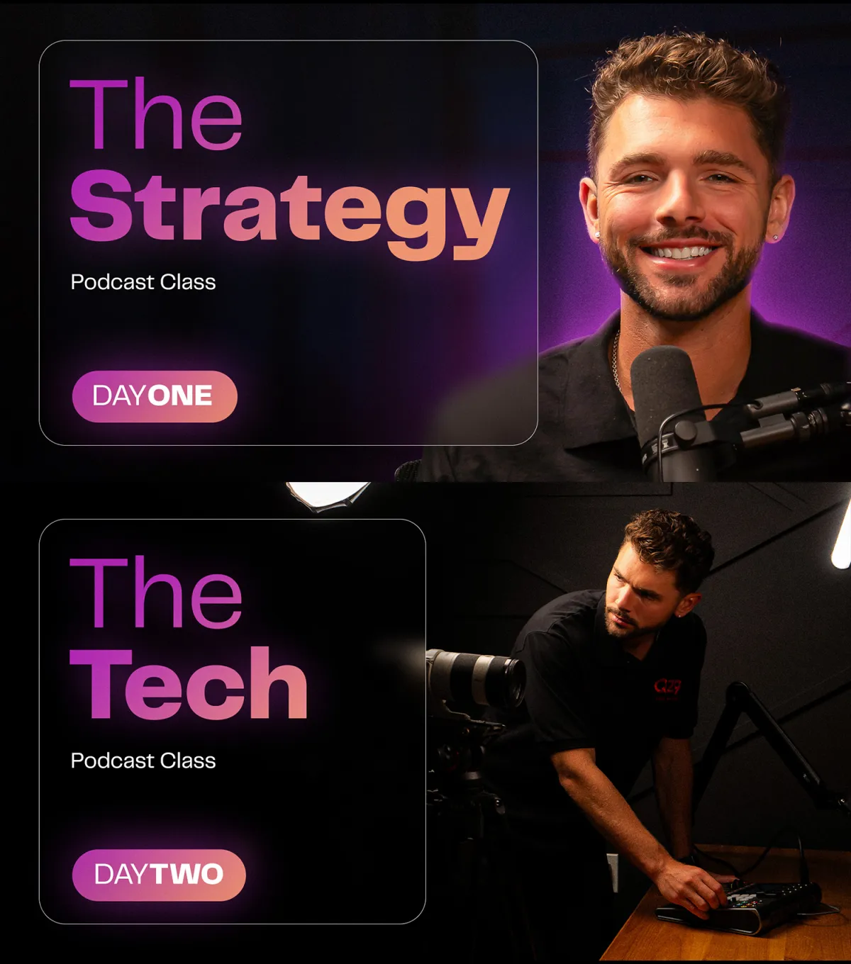 Podcast Class was created with an entrepreneur's mindset because I help entrepreneurs launch video-first podcasts everyday. What I've designed is the perfect way for you to develop and launch the podcast that you've always dreamed of in hyper-speed with an actual launch date. The main differentiator between my Podcast Class and other courses / tutorials is that Day 1 focuses heavily on the strategy that will make the algorithm identify the right listeners for your show, so you don't have to promote it elsewhere. In other words, your podcast will blow up on autopilot.